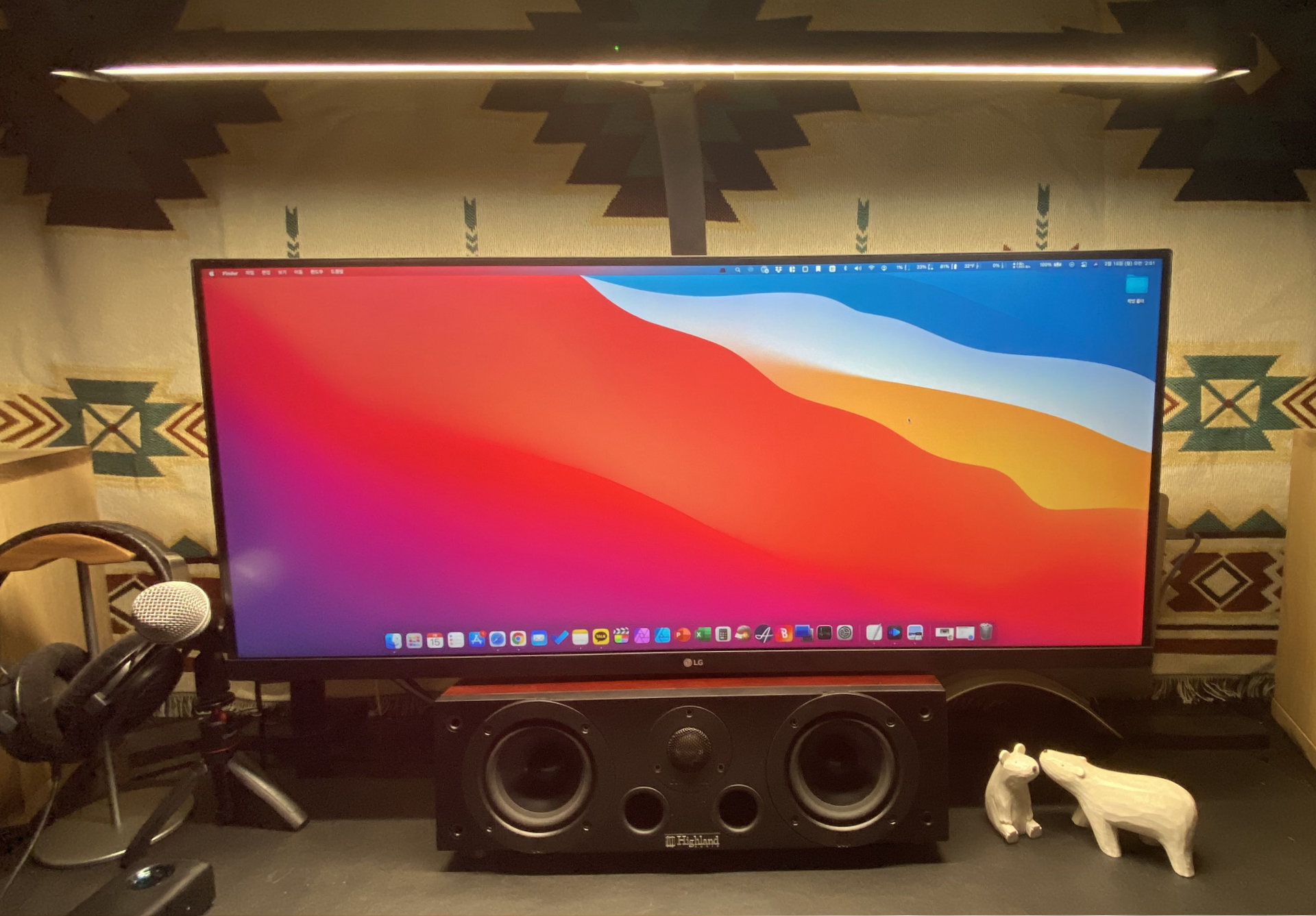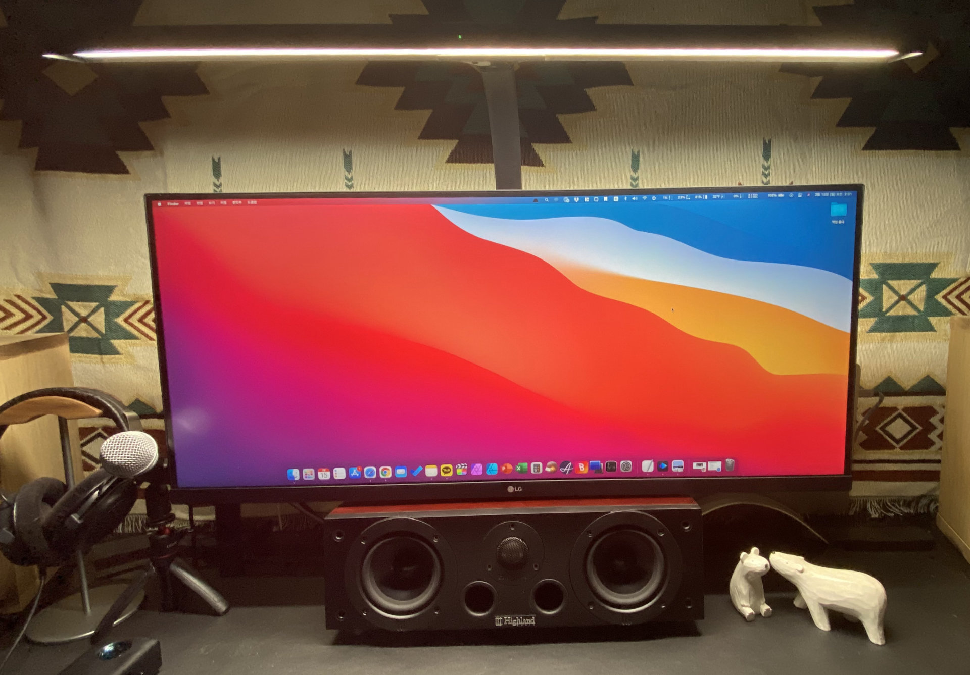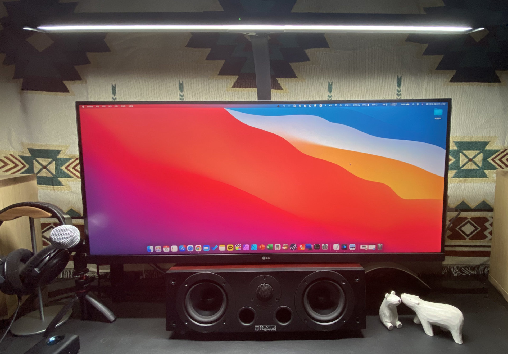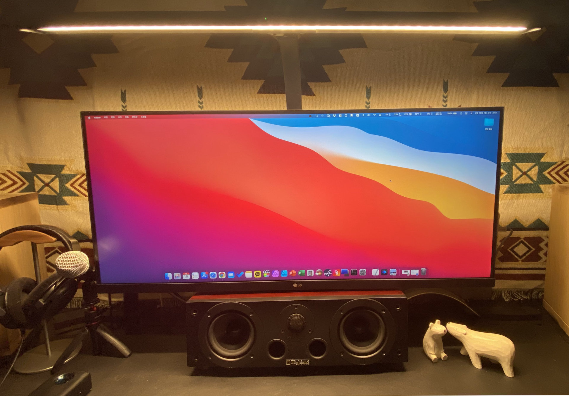 실제 측정 시에는 3880k, 4450k, 4500k, 6500k로 측정이 되었다. 전문 장비는 아니고, 안드로이드 어플리케이션을 사용한 값인 점을 참고하시길. 어찌되었든 스펙상으로나 실측 시에나 6500k를 지원하는 것은 매우 고무적인 일이다. 영상이나 그래픽 디자인 업무를 진행할 때는 6500k로 설정해서 사용하고, 평소에는 4450k로 설정해서 눈의 피로감을 줄이는 식으로 사용할 수 있기에 아주 편리하게 사용하고 있다. 34인치 와이드 모니터를 가득 채울 수 있으며 가로 1800 책상을 전부 밝혀주는 능력을 지녔다.