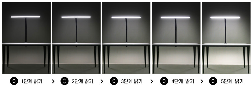 광량은 5단계로 변화를 줄 수 있으며 최대 1200Lux이다. 개인적으로 사용하면서 밝기가 부족하다 느낀 적은 없다. 1200Lux이지만 밝히는 범위 자체가 일반 LED스탠드와는 격을 달리한다.