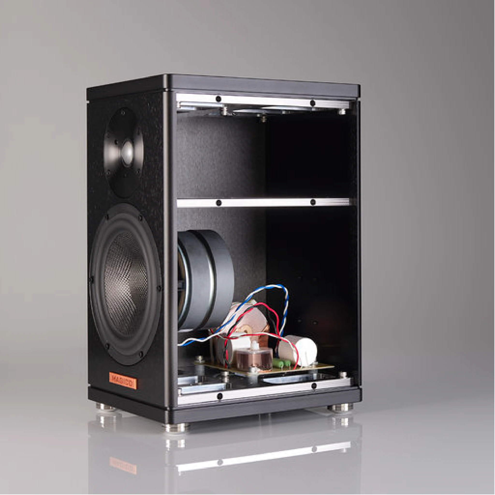 산업용으로 나오는 제품 중 가장 합리적인 소재는 고밀도 MDF이다. 목재중에서는 저렴한 소재로 꼽히는 MDF는 목재의 균일함이 동일하고 단단해 우수한 스피커 인클로져로 손꼽힌다. 많은 제조사들이 MDF인클로져에 고급 나무를 얇게 덧붙인 형태로 인클로져를 만들고 있다.