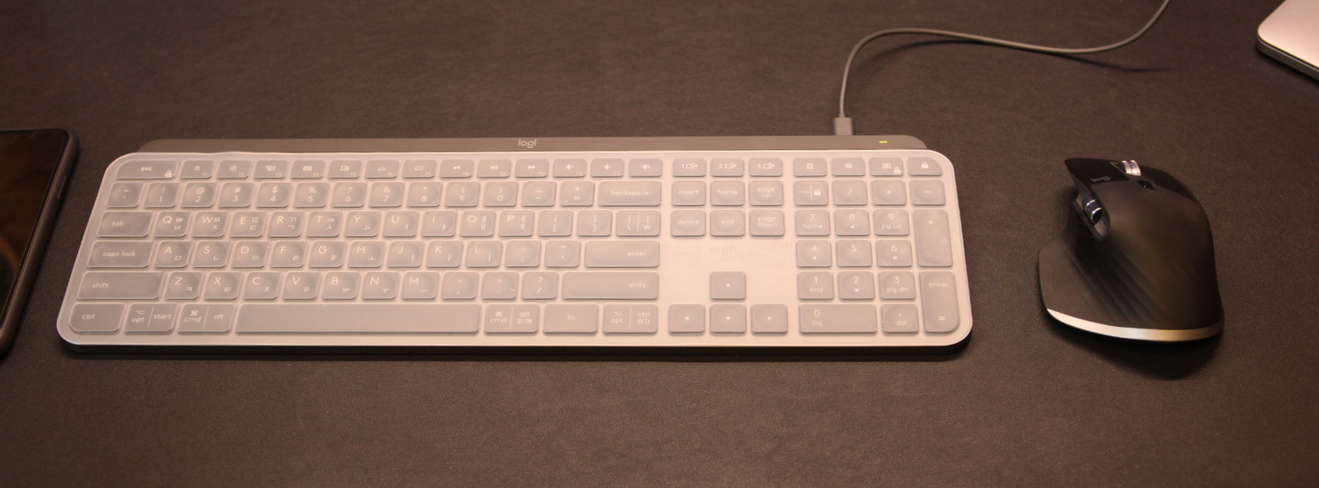 충전하면서 동시에 사용할 수 있는 점도 큰 장점이다. 내장배터리를 사용하는 블루투스 장비는 충전 시 작동이 불가능한 경우가 제법 있는데, MX Keys 블루투스 키보드는 큰 문제 없이 사용할 수 있었다.